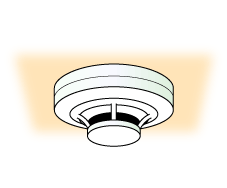 煙を感知して、火災の発生を警報音又は音声で知らせるもので、一般的には煙式の警報器を設置します。