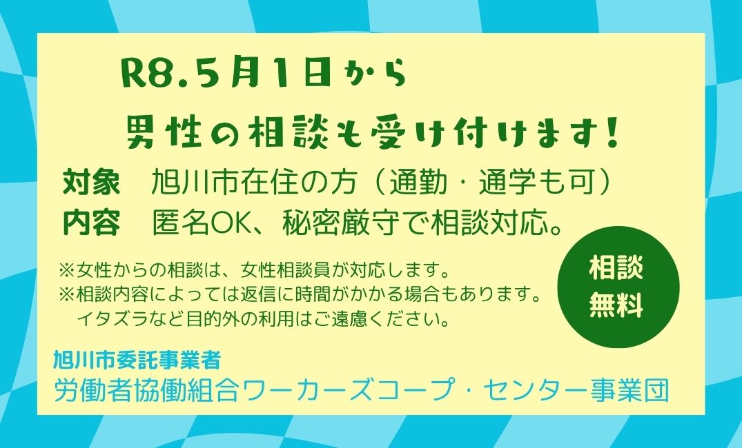 令和8年5月1日(金)からは、男性の相談も受け付けます。