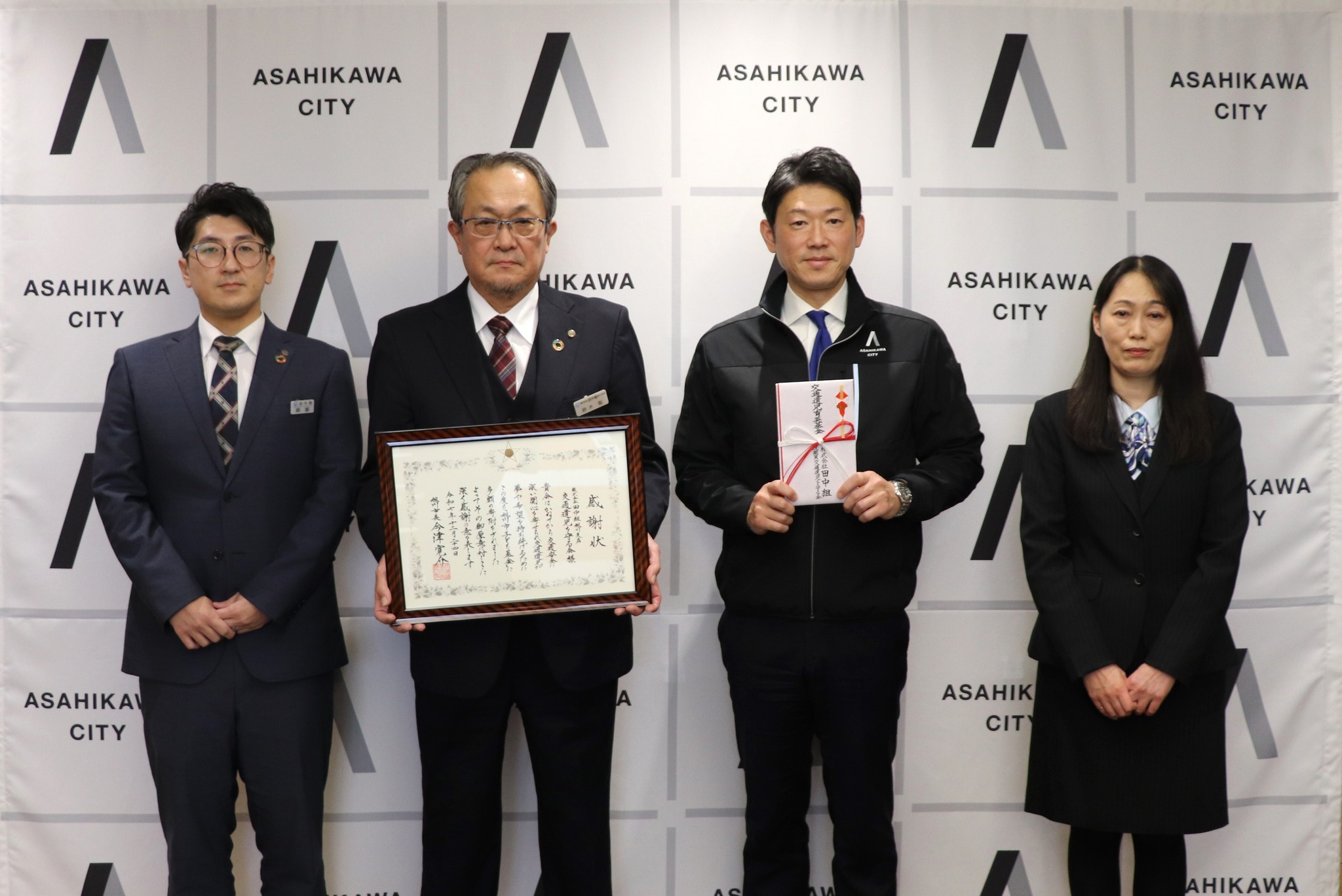 13:30 寄附に伴う感謝状贈呈(株式会社田中組旭川支店 交通遺児を守る会)