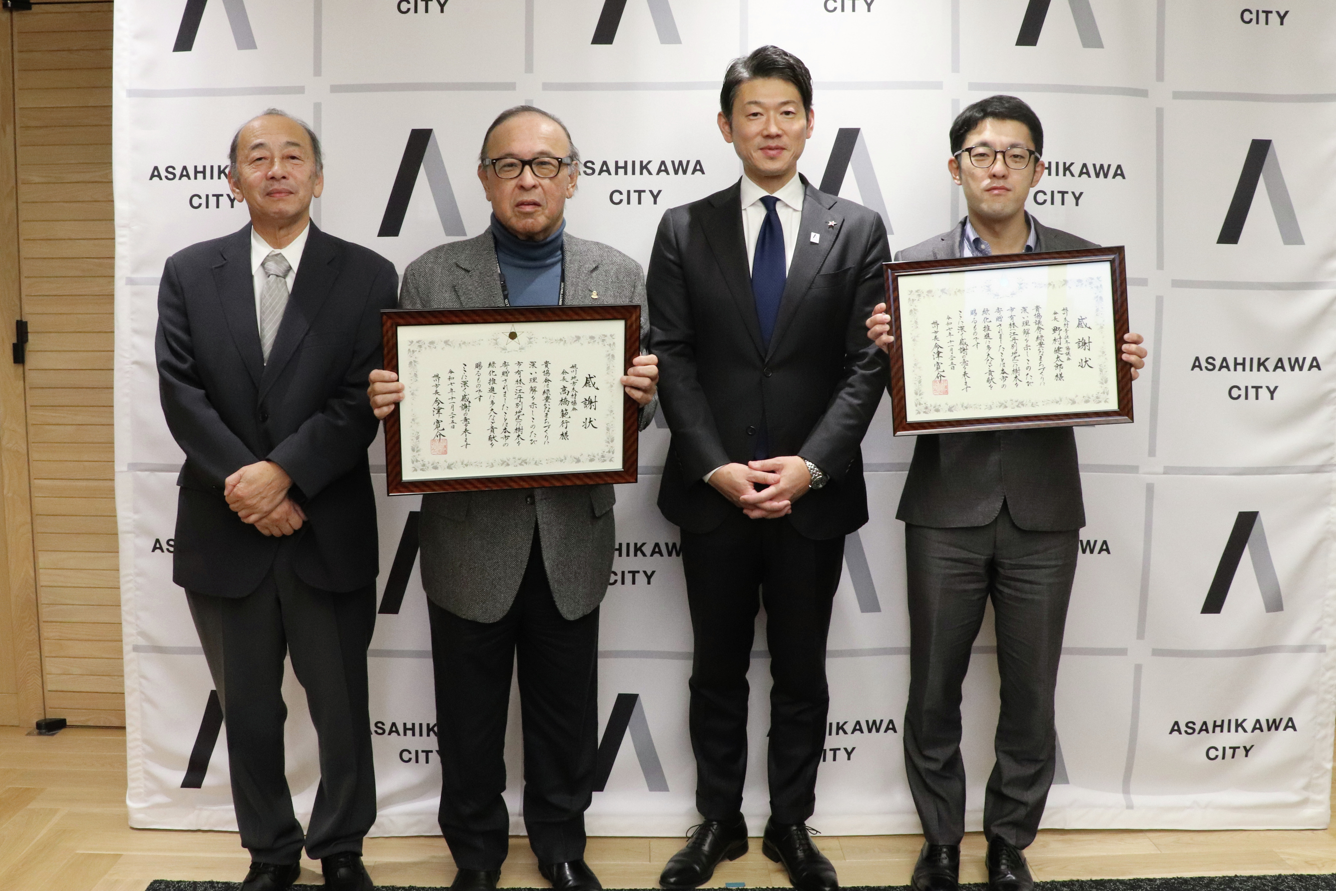 15:30 寄附に伴う感謝状贈呈(旭川地方木材協会、旭川木材青壮年協議会)