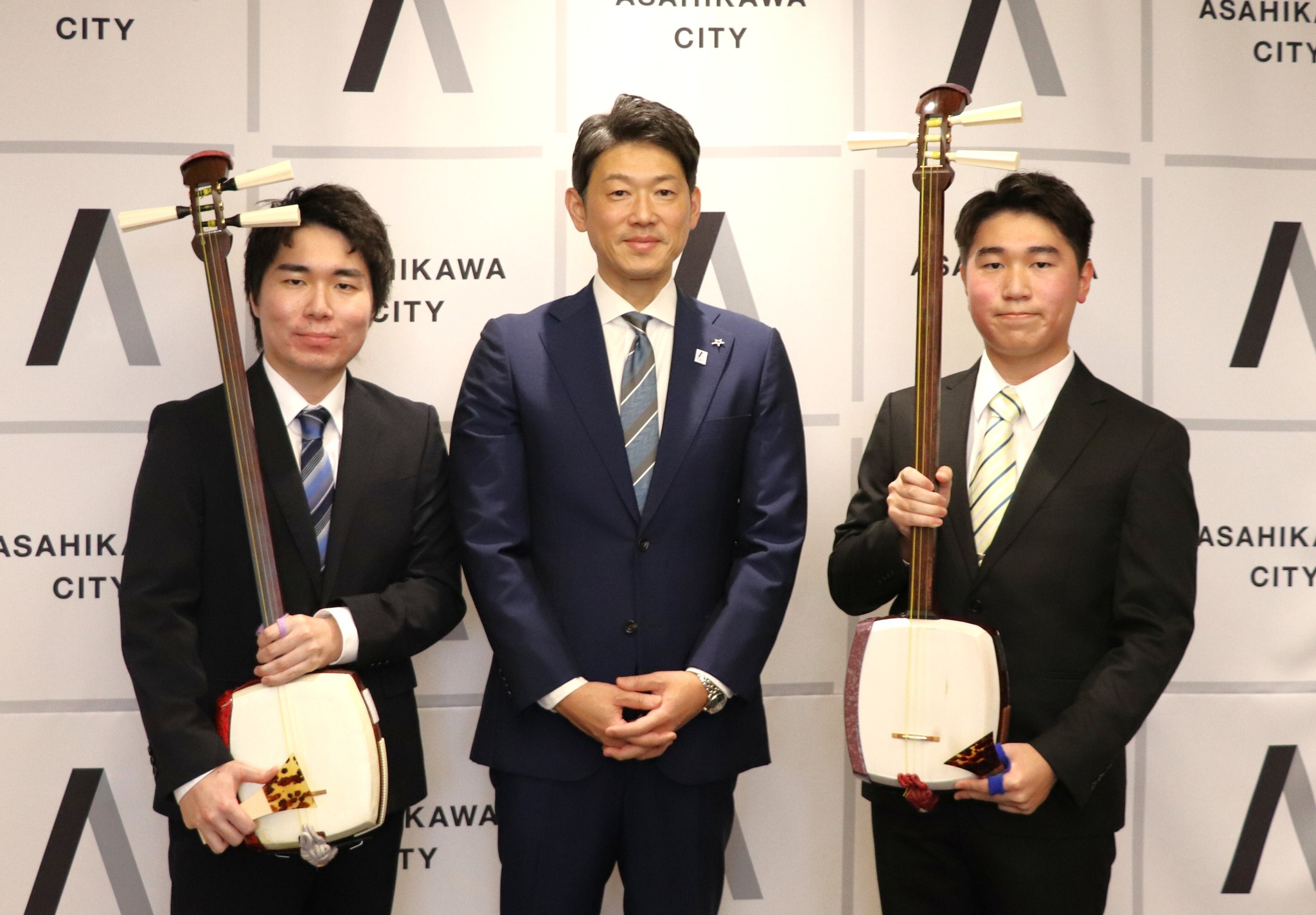 14:00 来客(千葉楽斗 氏・千葉音絃 氏/第19回津軽三味線日本一決定戦日本一の部 日本一、第65回郷土民謡民舞全国大会三味線グランプリの部 三味線グランプリ大賞受賞報告)