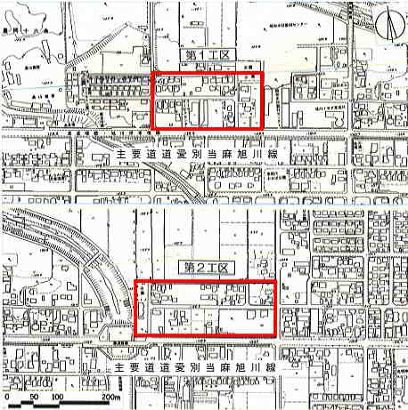 (補足)この地図は、旭川市建築部都市計画課が作成した5,000分の1の市街図を基にしています。
