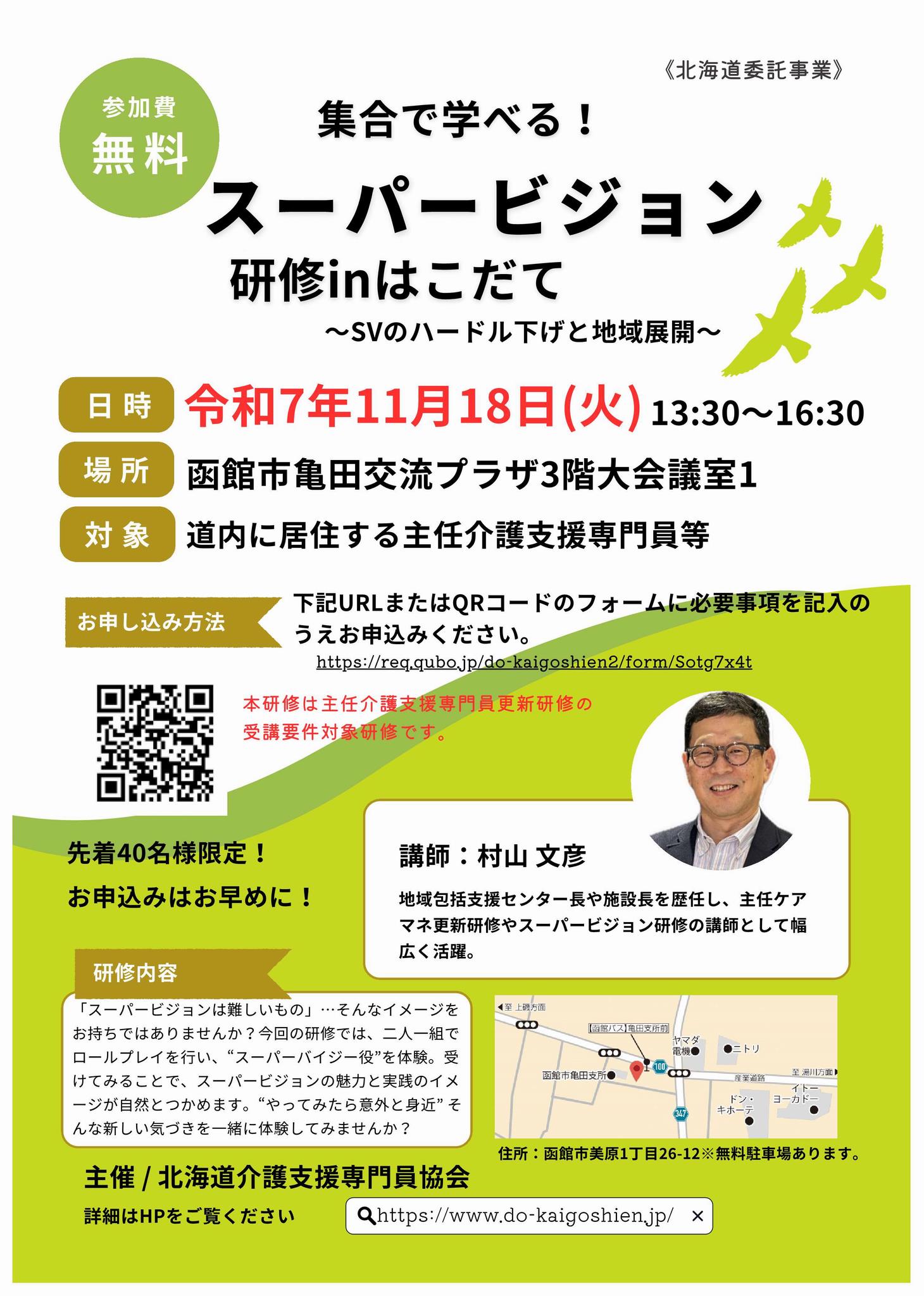 北海道の委託事業として、一般社団法人 北海道介護支援専門員協会が令和7年度介護支援専門員等資質向上研修事業「主任介護支援専門員フォローアップ研修inはこだて」を開催します。 ご興味のある方は是非お申し込みください。