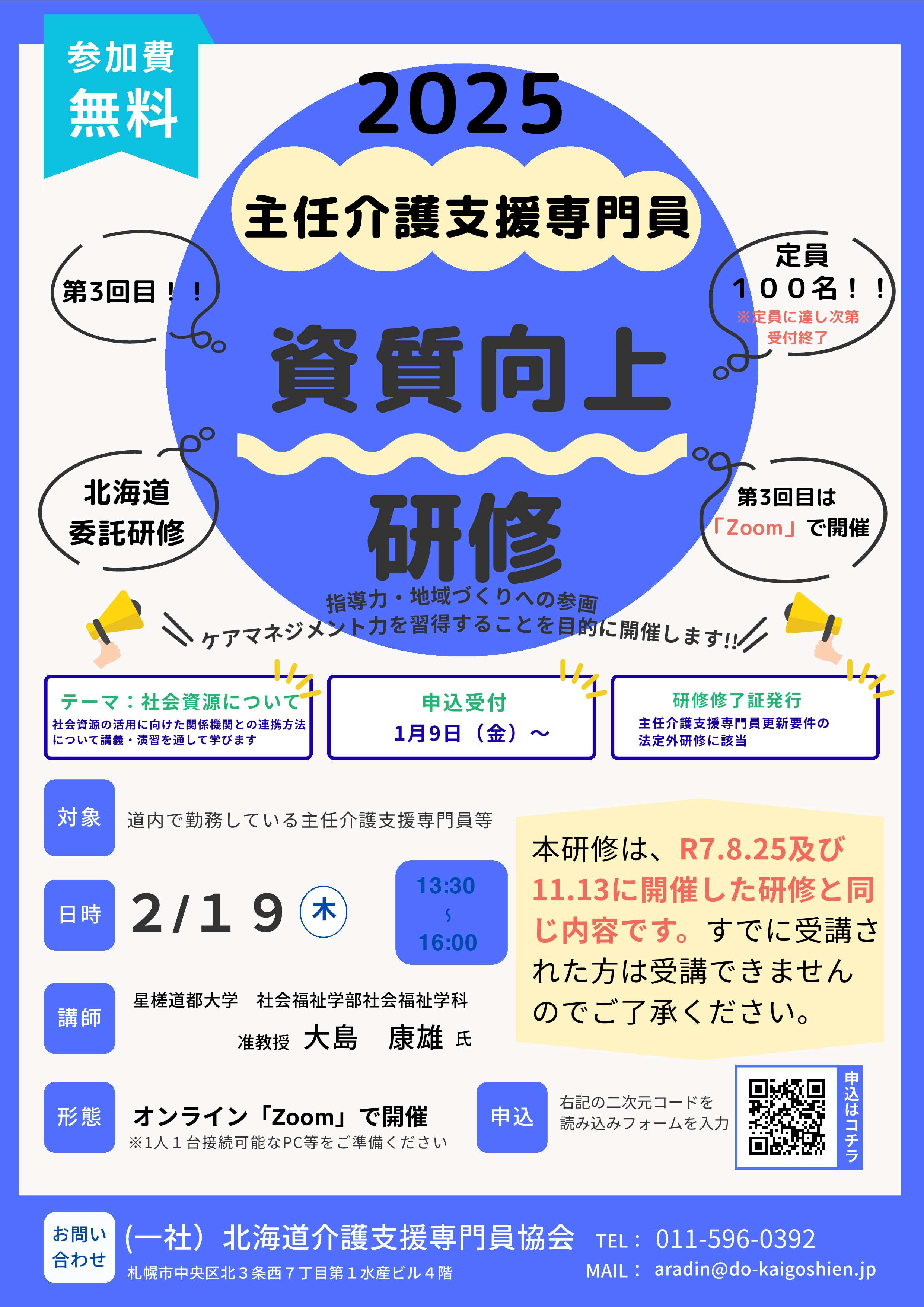 令和7年度第3回主任介護支援専門員資質向上研修のご案内