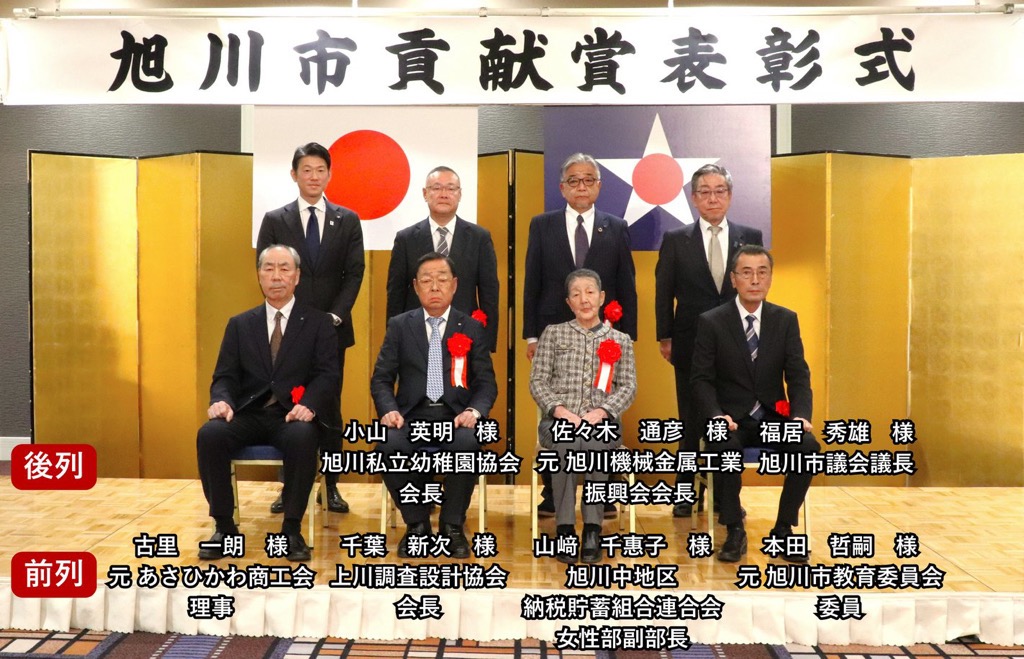 旭川市貢献賞は本市の社会の発展や産業の振興に長年にわたり貢献し、その功績が特に顕著な方に対し表彰を行い、その功績をたたえるものです。(平成4年4月27日制定)