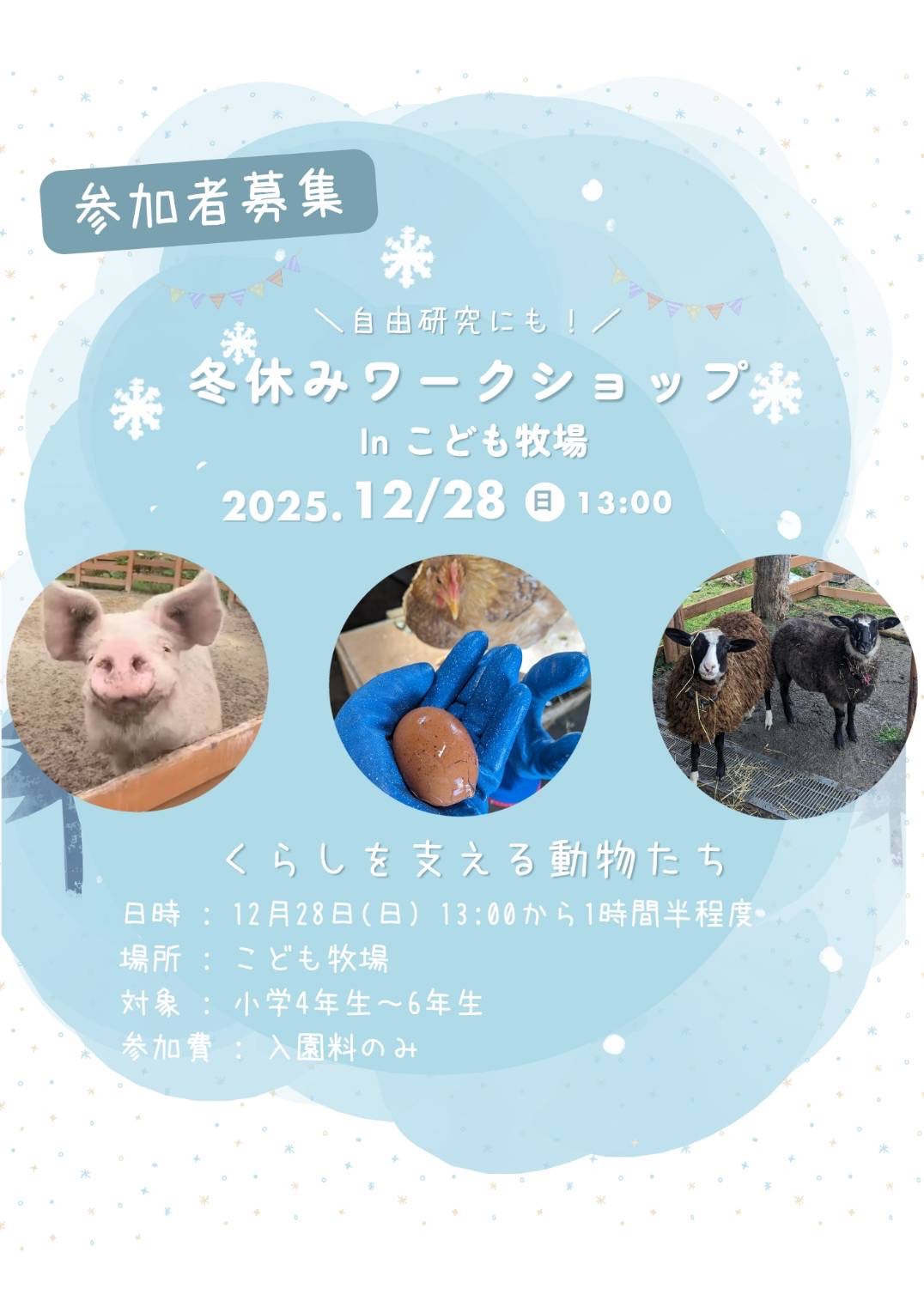 冬休みワークショップinこども牧場「くらしを支える動物たち」の実施について(12月28日実施)