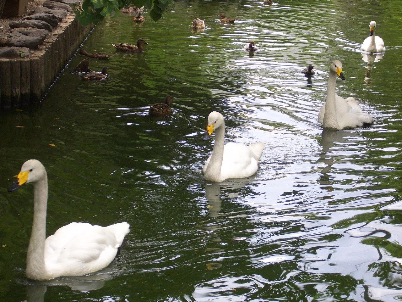 まずはととりの村のリニューアルオープンから始まります。なぜリニューアルかというと、ととりの村の池の漏水がひどくなったことと、基本的に雨水と、旭山の沢水がととりの池の水源なのですが、その水の供給が不安定になったことが原因です。池を少し浅くして面積を小さくしました。ただ池を作り直しただけでは旭山らしくないので、池の中をのぞき見できる潜望鏡を設置しました。水鳥たちが水中でどのように水かきのついた足を使っているのか?どのようにして餌をついばんでいるのかを覗いてみてくださいね。
