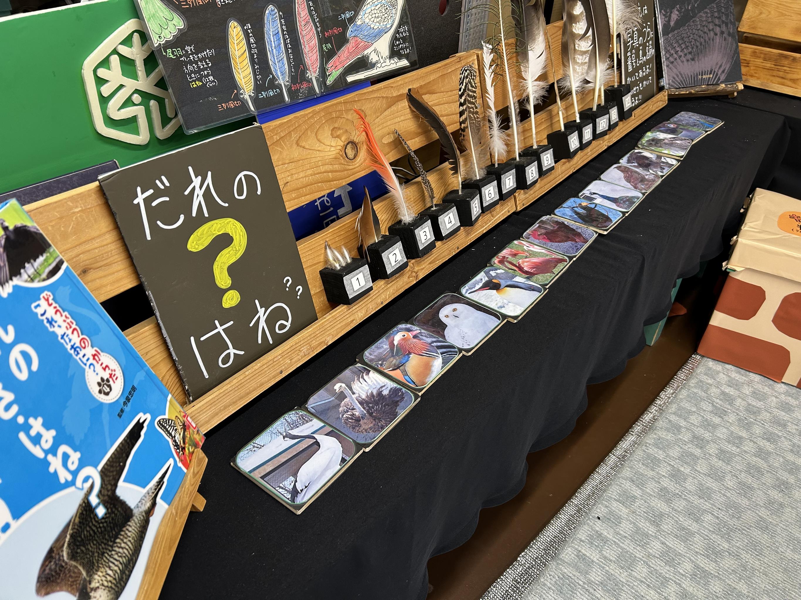 また、だれのものコーナーでは、「だれのはね?」コーナーがボリュームアップで登場。クイズを通して、「なるほど~」と学習できる内容となっております。色々な配布物もご用意しておりますので感心のある方はぜひ、動物図書館へお立ち寄りください!お待ちしています。