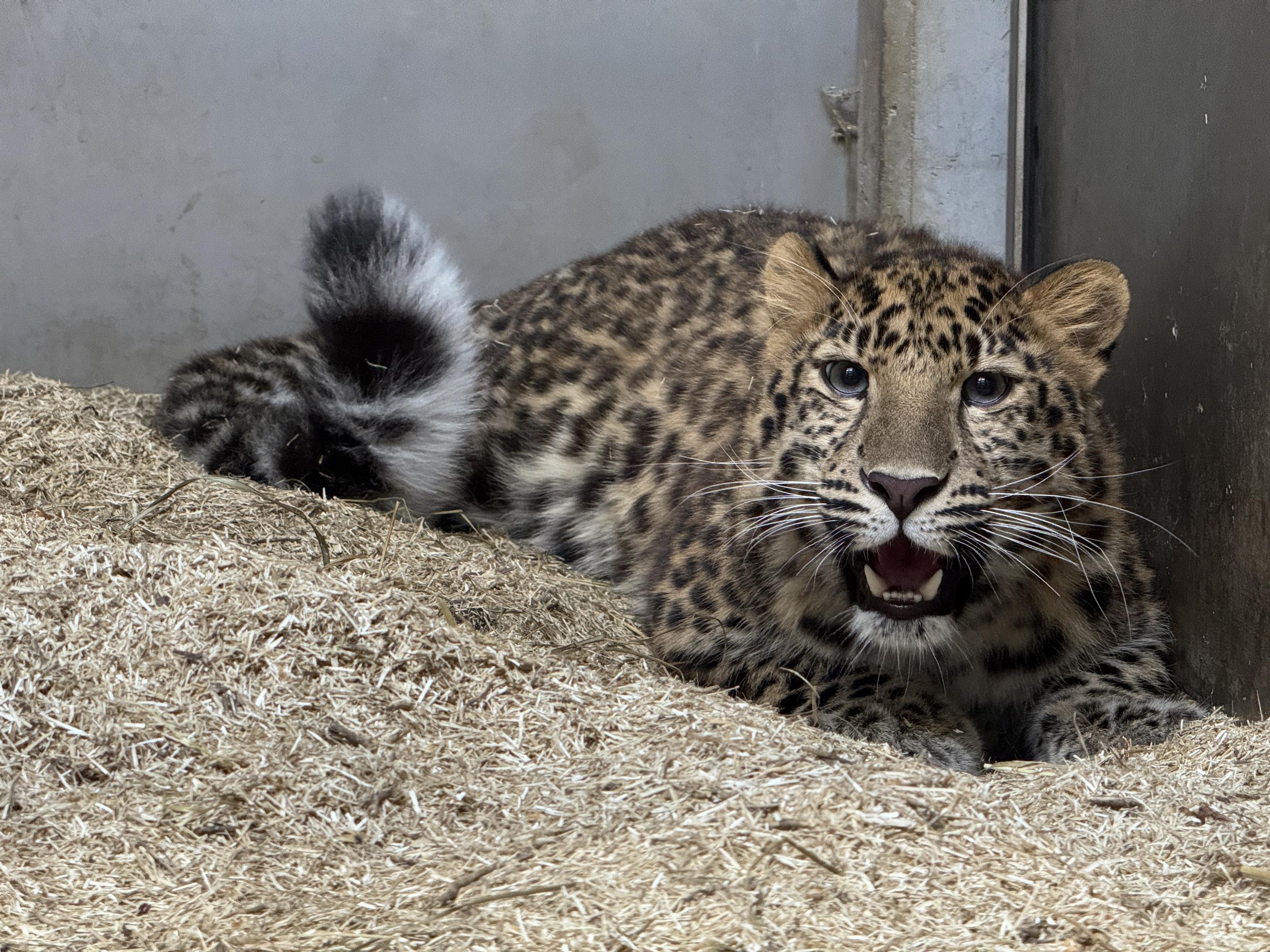 すっかり、日中の最高気温も1桁になり、冬が着々と近づいていますね。 さて、アムールヒョウの幸子について、聞かれることも多いので、近況をご報告しようと思います。 まず、1番は元気です! 親元から離れた生活もすっかり慣れた様子で、日々、走り回って過ごしています。 足の裏の傷のことを考えると、少しはじっとしていて欲しい気持ちもありますが、元気なことが1番です。 また、ずっと室内にいるわけではなく、日中はもうじゅう館のバックヤードの放飼場に出ています。 少しでも、足の裏の保護のため包帯を巻き、床材を柔らかいものに変更するなどして、少しずつではありますが、治る方向に進んでいます。