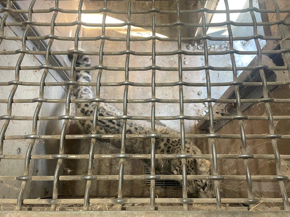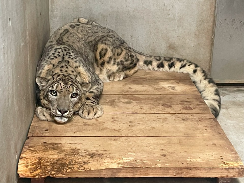 2月12日、多摩動物公園からユキヒョウの「コボ」が旭山動物園にやって来ました。 到着後、飼育員でコボが入った輸送箱を寝室へ運び、入口をシュートに合わせて扉を開けました。すると、コボはためらうことなく、すんなりと寝室の通路へ出ていきました。 初めての場所に立ったコボは、周囲をゆっくりと見回していました。
