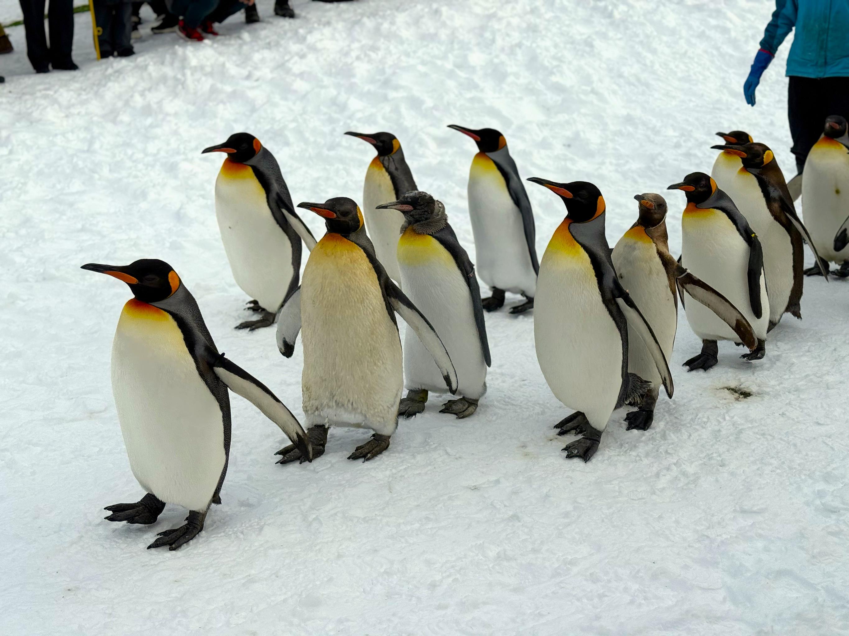 冬の風物詩であるペンギンの散歩は、冬場におけるペンギンの運動不足解消を目的として、野生ではキングペンギンが集団で海にエサをとりにいく習性をみていただこうと実施しています。