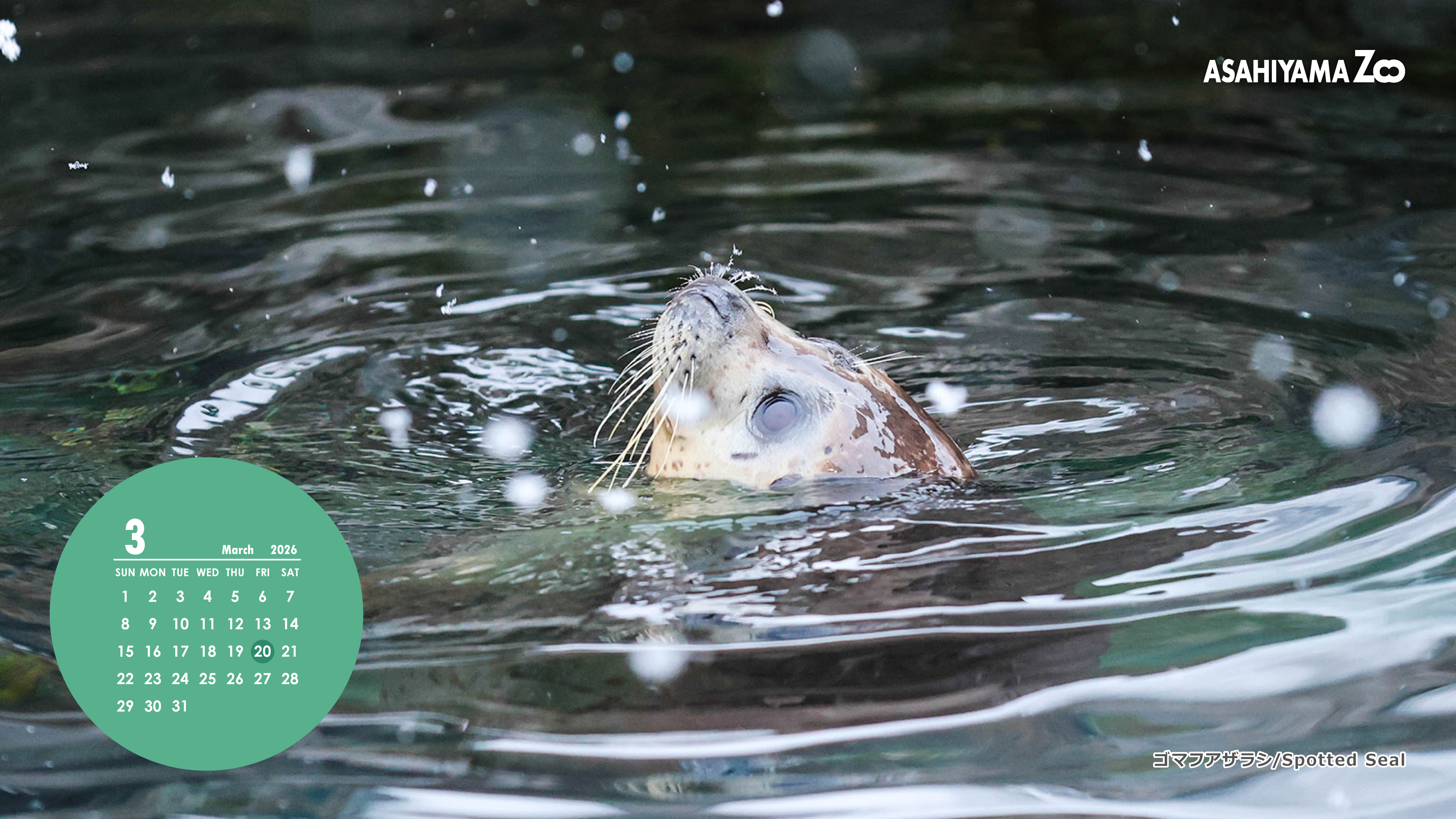 3月の壁紙カレンダーの動物はゴマフアザラシです。