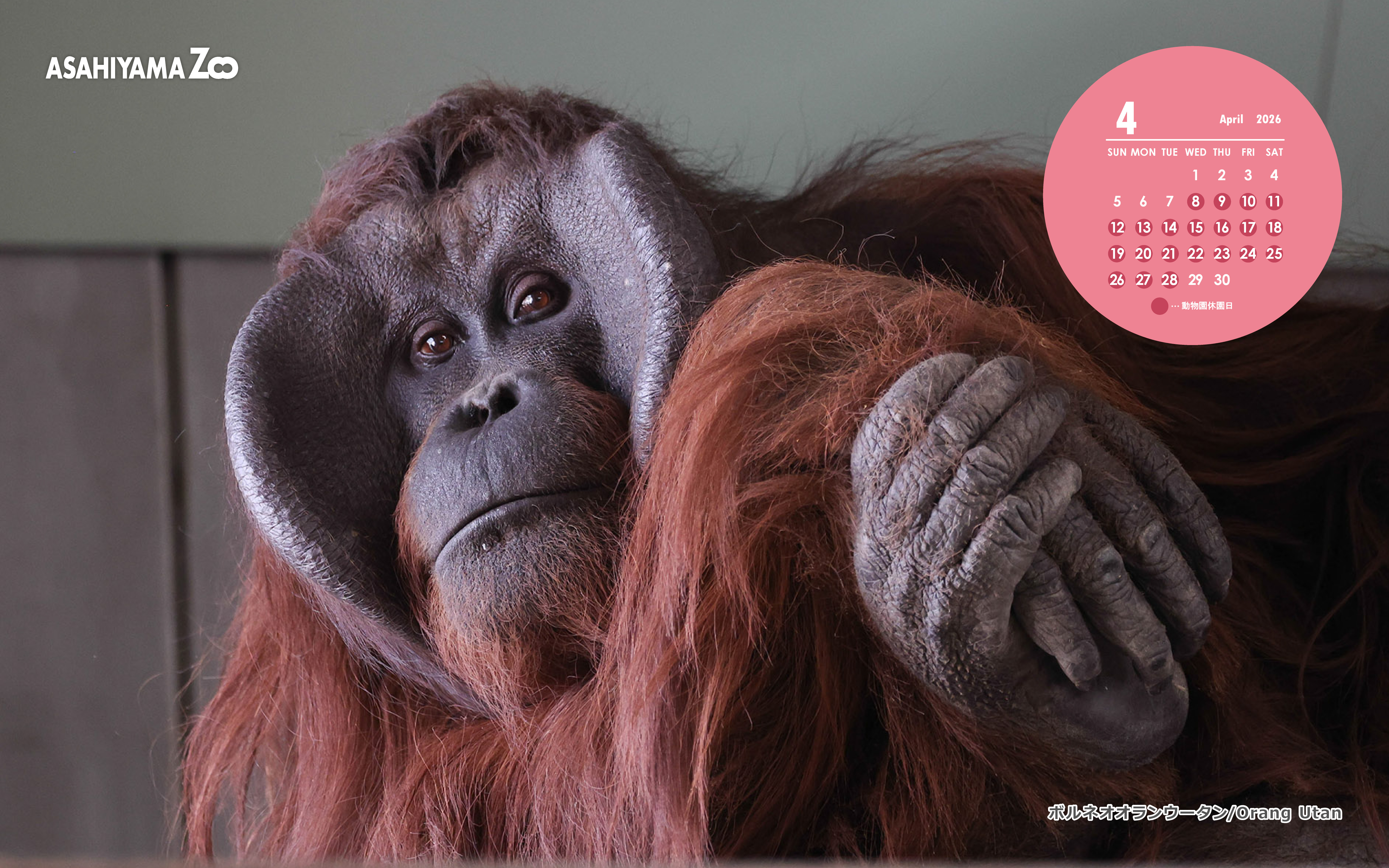 4月のWEBカレンダーの動物はボルネオオランウータンです。
