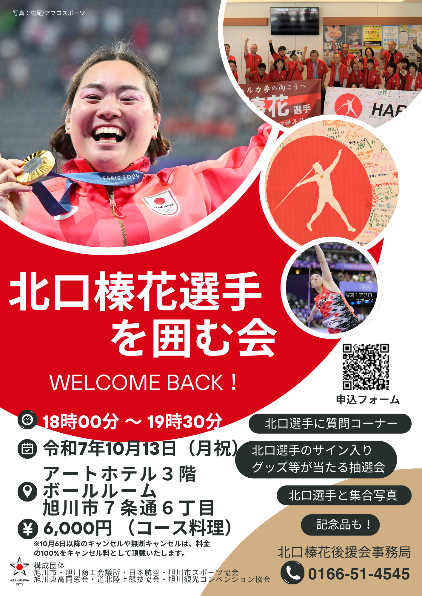 スポーツイベント等に「北口榛花記念旭川市スポーツ月間」の冠を記載