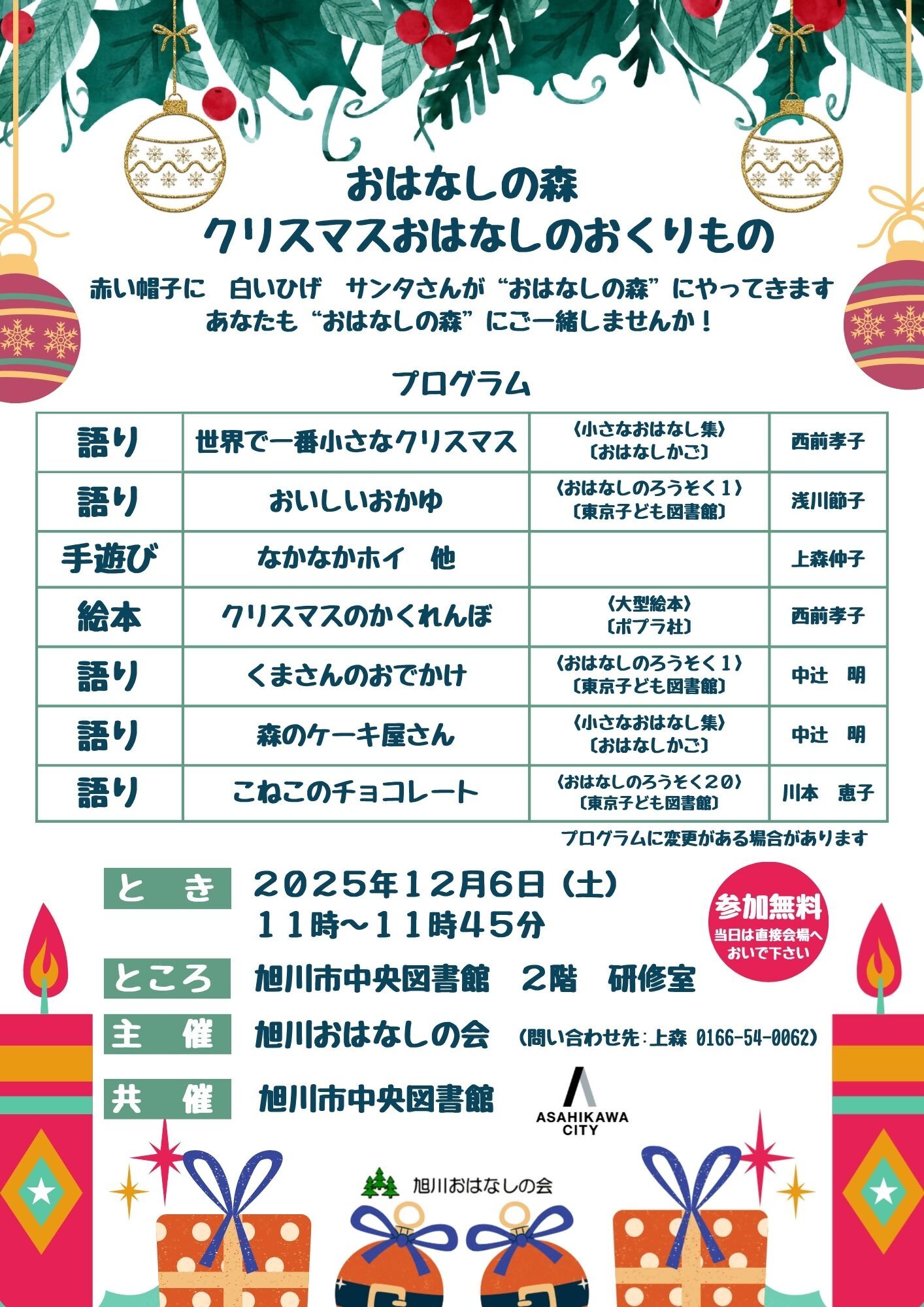 ホーム> イベント> 講座・公演> おはなしの森 クリスマス おはなしのおくりもの(中央図書館)