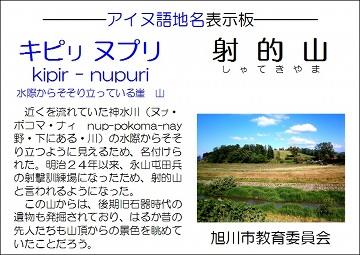 アイヌ語地名表示板 キピㇼ ヌプリ(射的山)