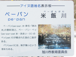 (pe-pan 水 飲む -「飲み水」の意味)説と、ペー パン ペッ(pe-pan-pet 水 あまい 川)のペッ(pet 川)が略された説の二説がある。パン(pan)には、味が薄いという意味もある。