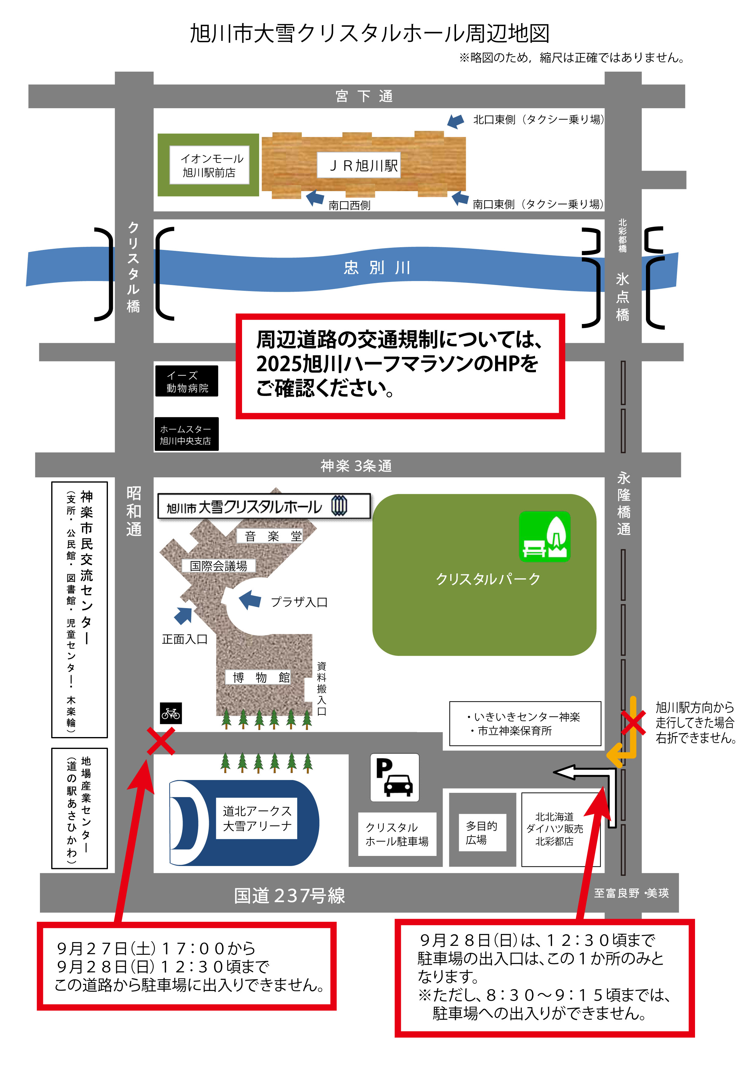 9月28日(日曜日)の午前中に、車で旭川市博物館に来館されるお客様は、下記の2025旭川ハーフマラソンホームページへのリンクをご確認ください。