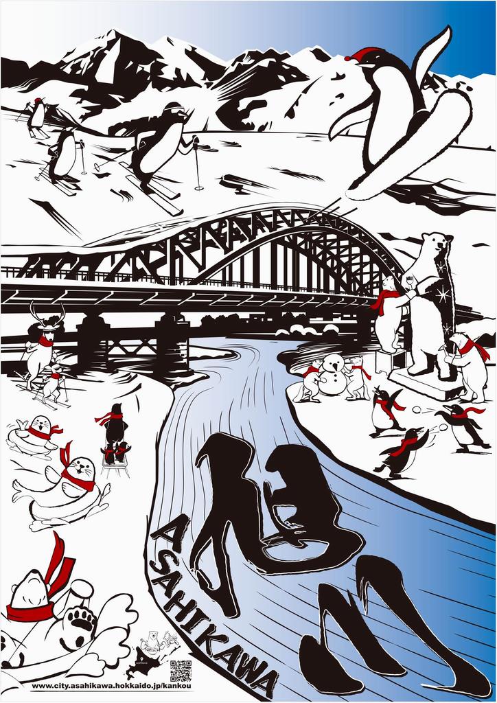 - 「旭川」:イラストで春夏秋冬を表現したもの