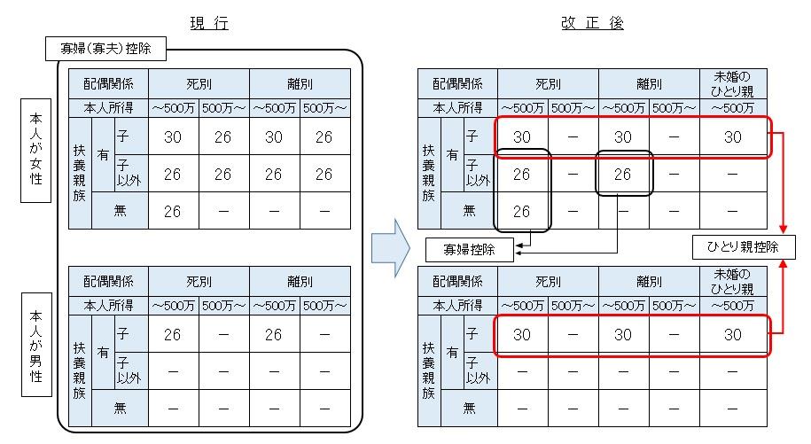 未婚のひとり親に対する税制上の措置及び寡婦(寡夫)控除の見直し