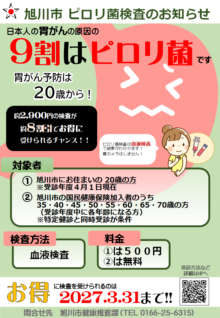 - 旭川市にお住まいで受診年度の4月1日時点で20歳の方