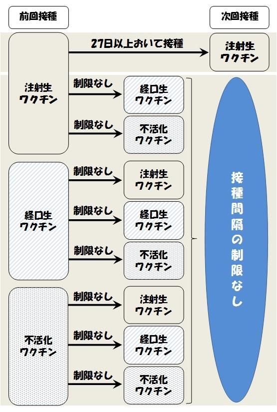 次に接種するワクチンが注射生ワクチンの場合 のみ、27日以上の間隔をおいて接種 次に接種するワクチンが、経口生ワクチン・ 不活化ワクチンの場合は制限なし |