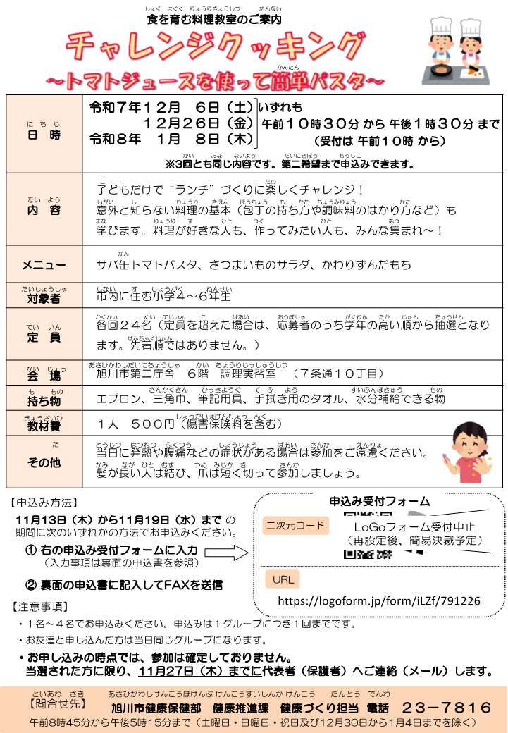 - 対象:小学4~6年生の旭川市民