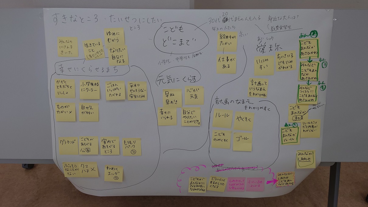 委員の皆さんからの提案や意見はホワイトボードにまとめられ、計画の形が徐々に見え始めました。今年度は全3回の会議を予定しており、最終回では完成した計画のお披露目を行う予定です。