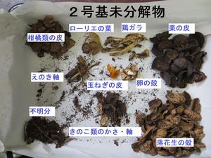 1号基、2号基では分解されていたバナナの皮や玉ねぎの皮など多く残っていました。