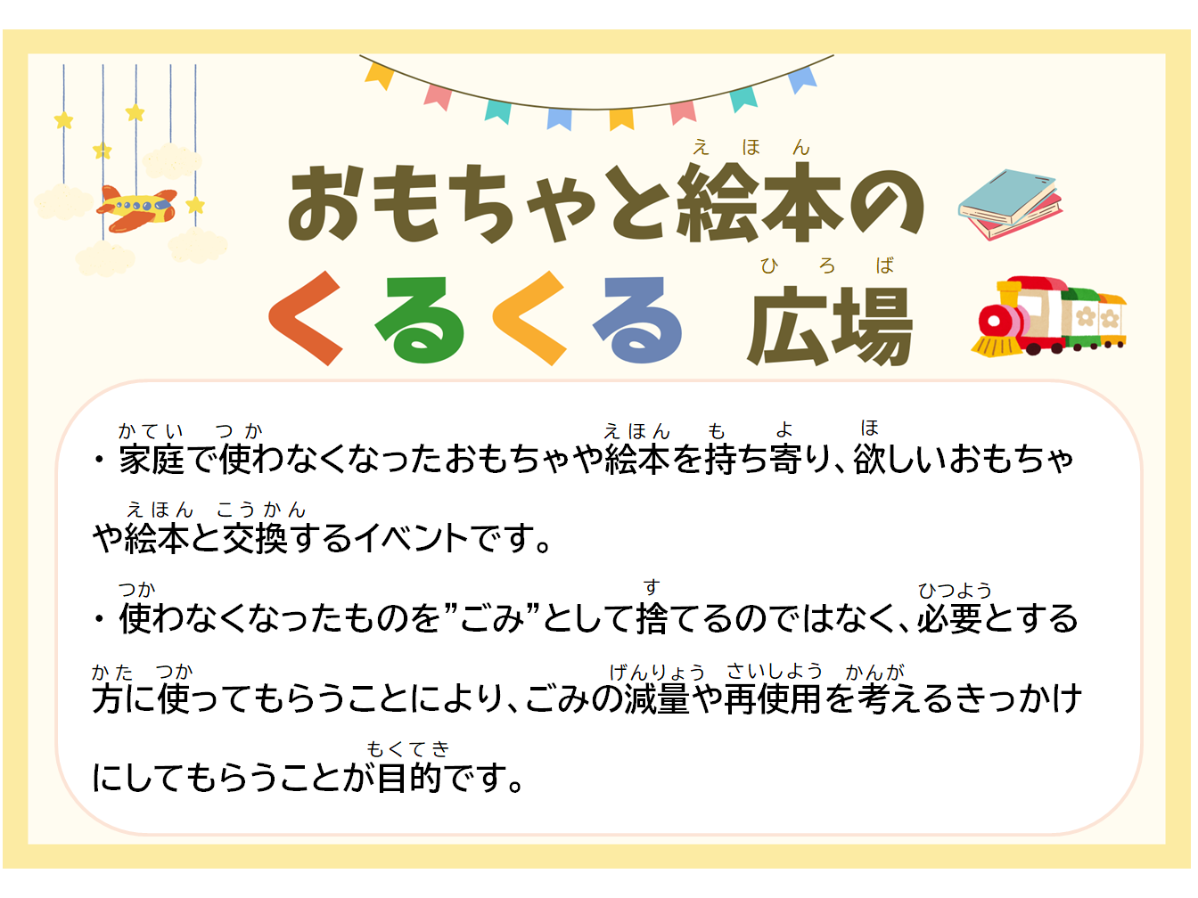 自分では使わなくなった物や余っている物なども、すぐに「ごみとして捨てる」のではなく、必要とする方に譲るなどして、もう一度使えないか検討してみましょう。
