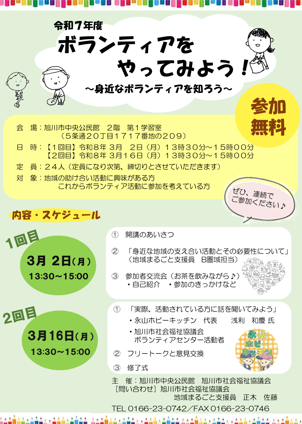 旭川市内の全公民館の実施講座については、公民館のイベント一覧でご確認ください。