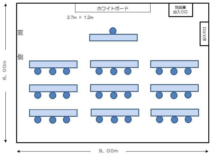 - 中区分の部屋の中では小さい部屋ですが、物品庫が併設されており、机等を収納することにより、広く使える部屋となります。