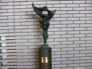 - 大会議室前にある彫刻は、木内克(きのうちよし・1970年第1回中原悌二郎賞受賞)の「エーゲ海に捧ぐ」という作品です。素材はブロンズで、高さは台座を除いて228センチメートルです。平成30年3月に、旭川空港1階ロビーから移設されました。