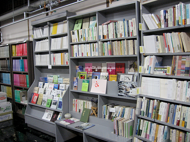 奥の書棚は、木村隆さんの蔵書で、日本の歴史の本や、デザイン切手の本など、様々なジャンルの本がありますので是非探してみてはいかがでしょう。