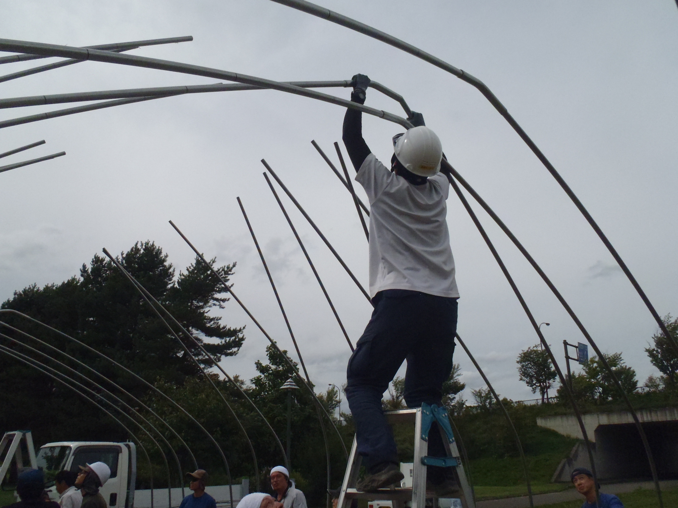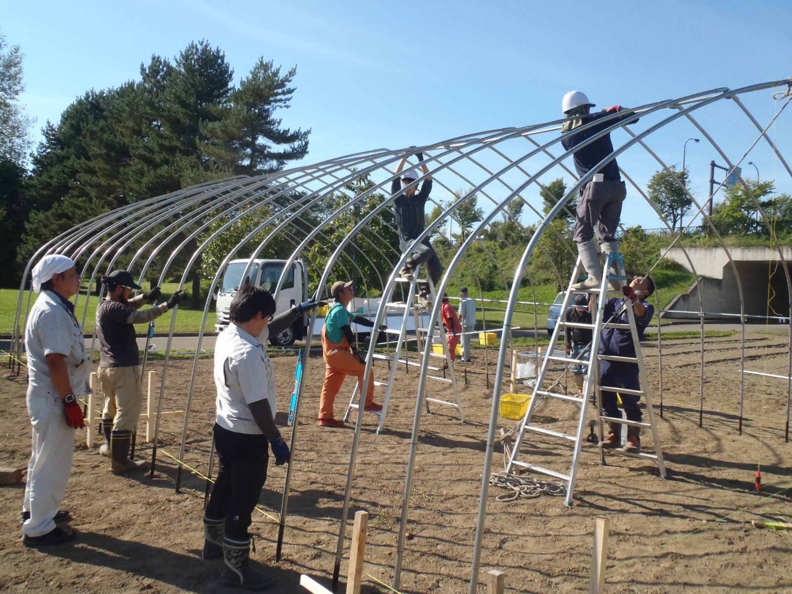 地取り~施工~解体までを実際に体験しながら、ハウスの部材や構造、作業工程などを学ぶ研修を実施しました。