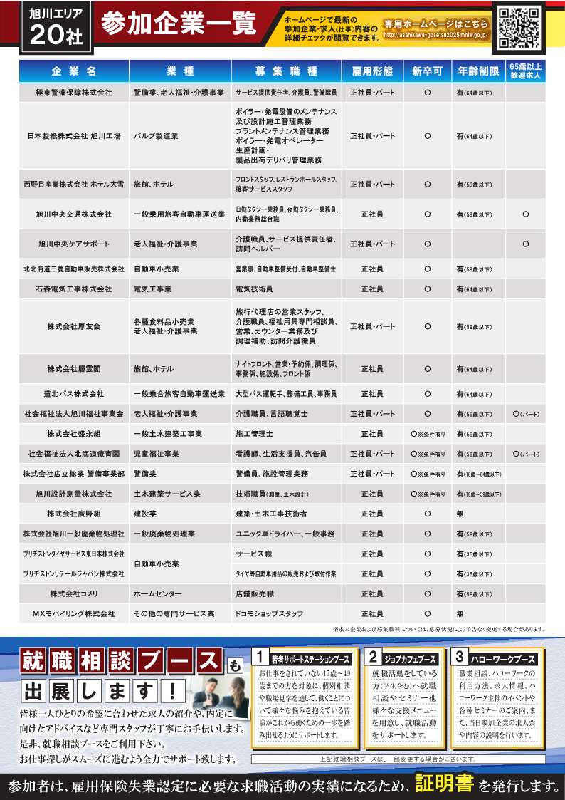 JA上川ビル(2階会議室)で企業20社が個別ブースを出展。