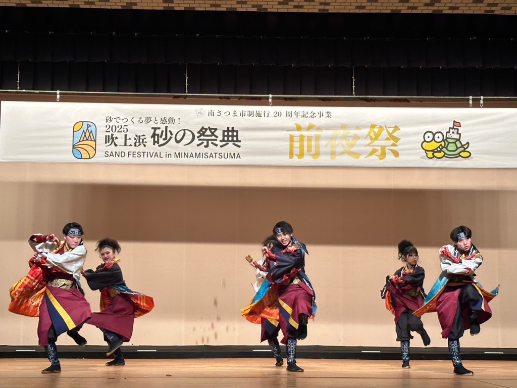 旭川市訪問団が2025吹上浜砂の祭典開催期間に合わせ、5月2日から4日まで南さつま市を訪問し、2025吹上浜砂の祭典前夜祭やオープニングセレモニー、姉妹都市提携10周年記念式典に参加するとともに、文化芸術団が砂の祭典のステージなどで躍動感あふれるよさこいソ-ラン踊りを披露しました。