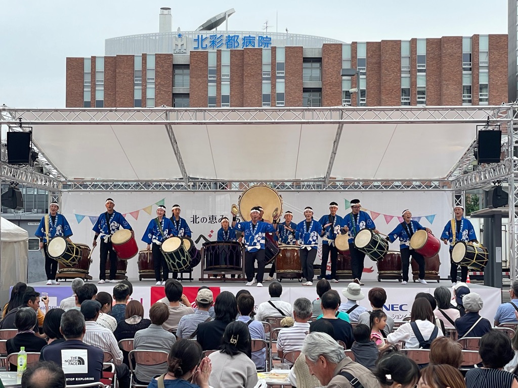 北の恵みあさひかわ食べマルシェ期間(9月13日から15日まで)に合わせ、南さつま市訪問団が旭川市を訪問し、 記念祝賀会や記念花壇披露セレモニーに参加するとともに、食べマルシェのオープニングステージ等において伝統芸能である金峰権現太鼓を披露しました。