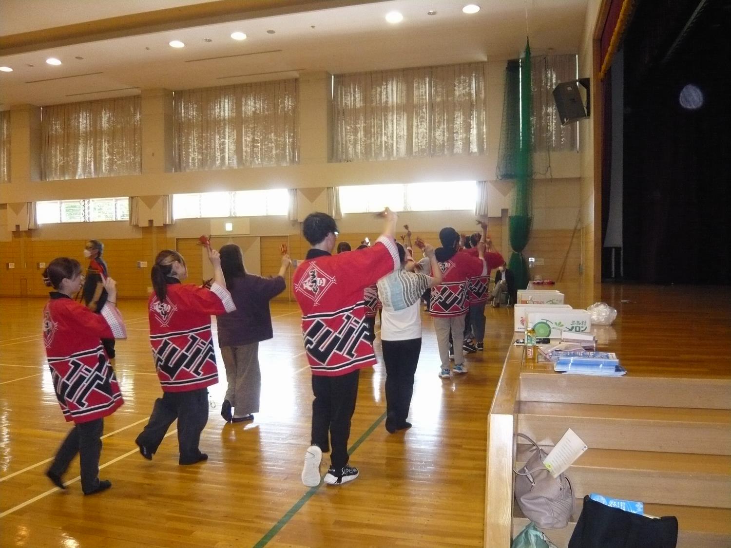 7月20日、本番に向け、踊りをレクチャーしてもらいました。踊りを習うだけでなく、数グループに分け地域の方から屯田まつりの歴史や苦労話などを聞き、交流を深めました。