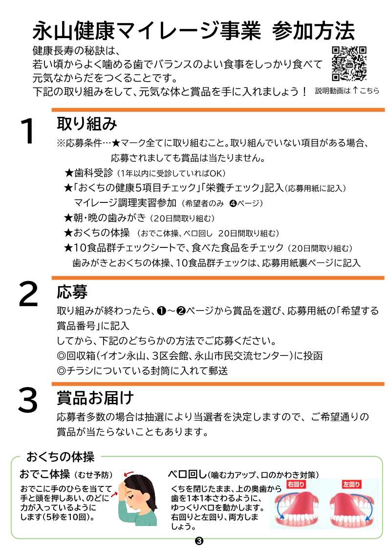 永山健康マイレージ実行委員会ではバランスのよい食事や口腔ケアを通じた健康増進のため、「永山健康マイレージ事業」を実施します。