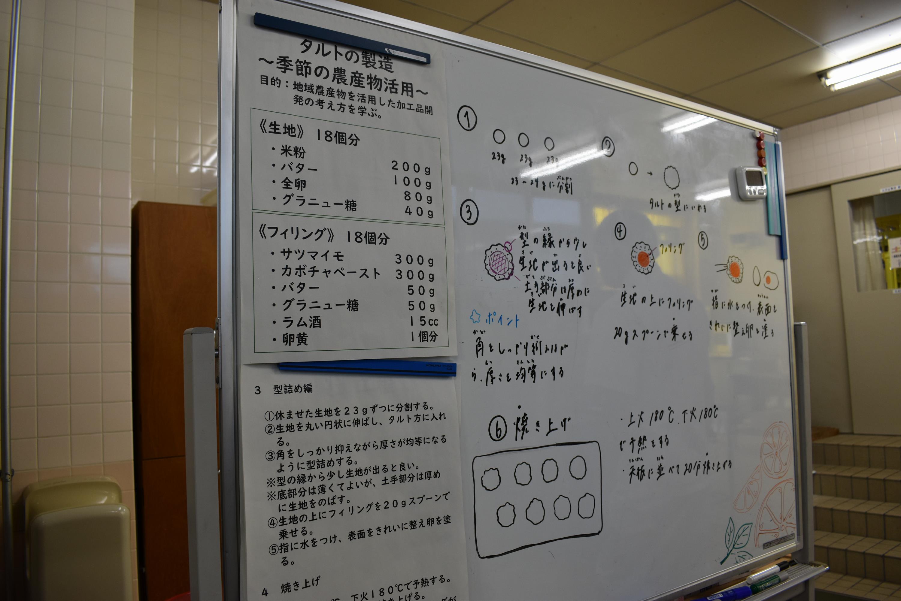 旭川農業高校で採れたサツマイモを使ったタルト作りに挑戦しました。校舎の中には学校の給食調理室のような大きな鍋や、オーブンなど本格的な設備が整っています。