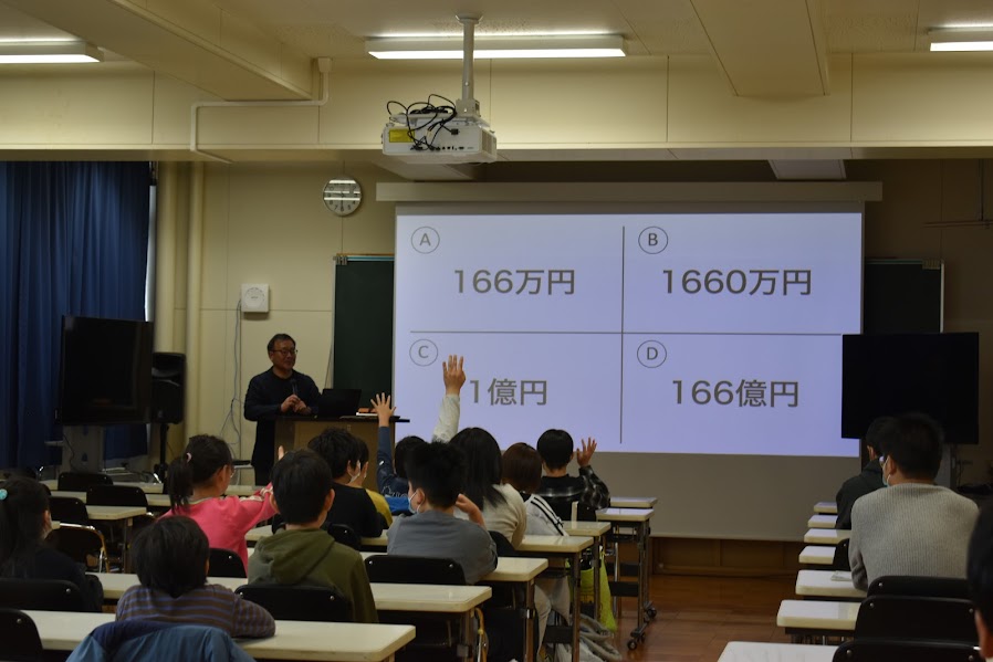 毎年6月に実施しているこの事業ですが、今年は校舎の新築移転があったため、10月30日(木曜日)の実施となりました。子どもたちに町内会や市民委員会の活動を学んでもらうため、永山第三地区市民委員会の役員3名が永山西小学校の3年生62名に対し、授業を行いました。地域のおまつり運営や交通安全指導、防犯パトロールなど、様々な場面でオタスケマンがボランティアとして活躍していることをお話ししました。授業を受けた児童からは、「自分たちもボランティアに参加したい」という声が上がりました。15年に渡りこの取り組みを続けていますが、授業を受けた子どもたちが自らごみ拾いを行った例もあり、将来は積極的にボランティアに参加する大人になってほしいと願っています。