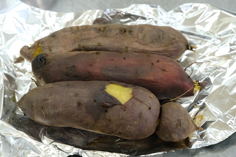 ムースに使用するサツマイモは、旭川農業高校産のシルクスイートという品種。オーブンで5時間かけてゆっくり火を通し、甘みを引き出します。