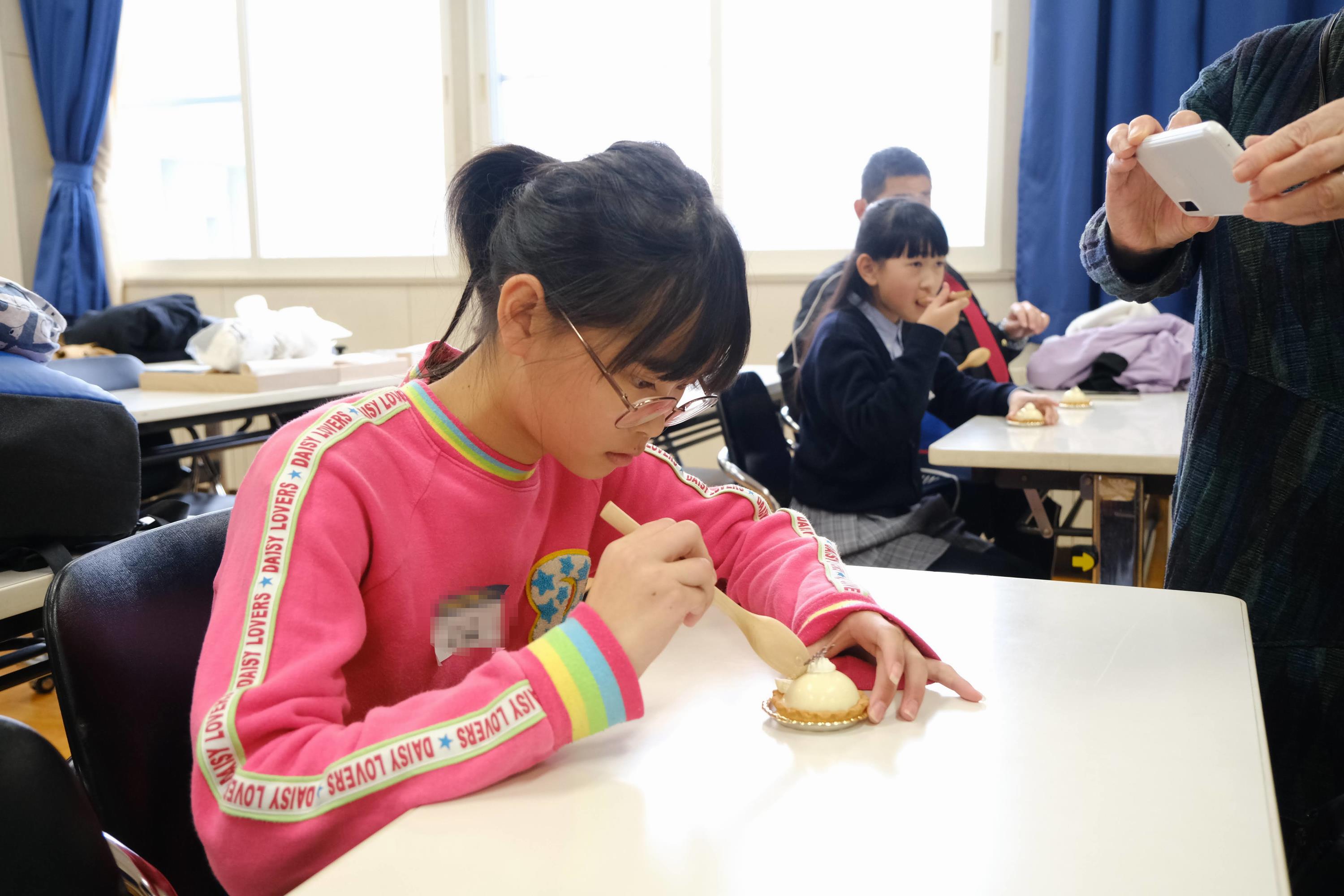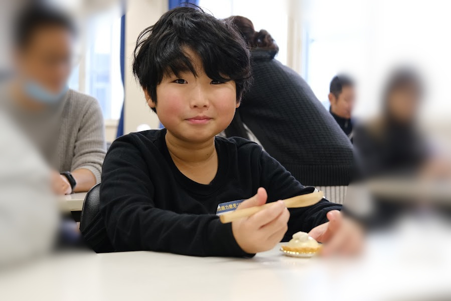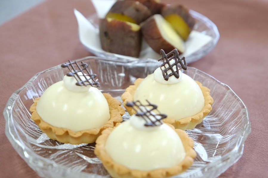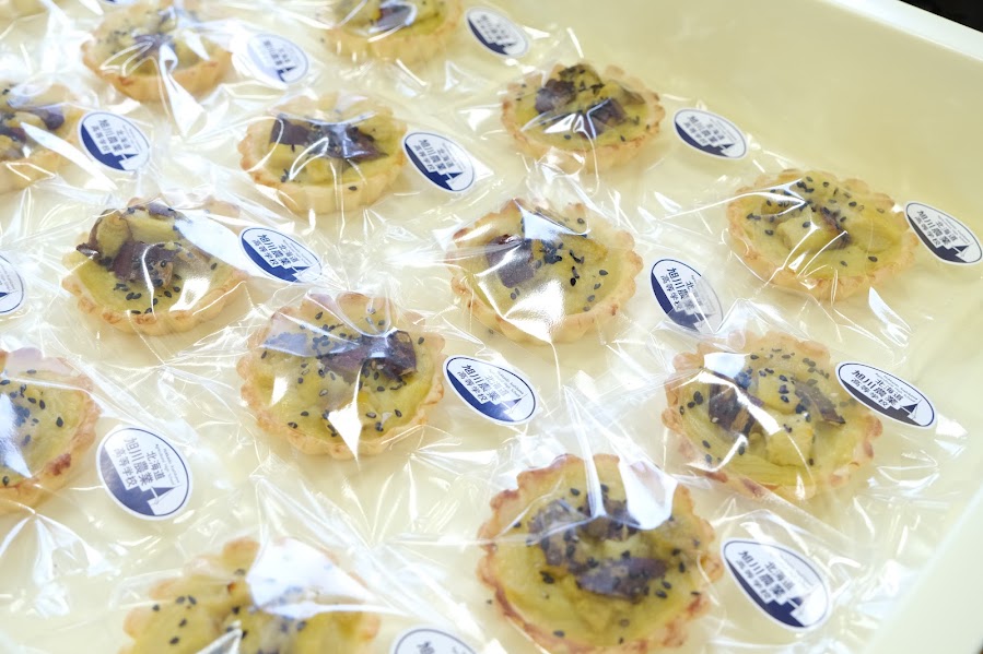 最後に、出来立てのムースタルトを試食しました。自分で作ったスプーンで食べるサツマイモムースタルトの味は格別でした。また、おみやげとして、旭川農業高校特製のサツマイモタルトをいただきました。