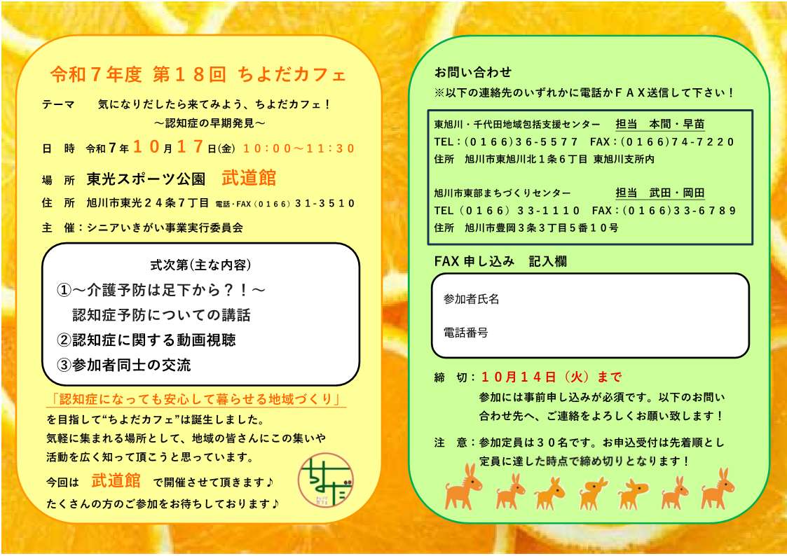 また、実行委員の東旭川・千代田地域包括センターの職員から軽度認知障害(MCI)についてのお話や、東光図書館から認知症に関する書籍のご案内があり、認知症への理解が深まる有意義な時間を過ごすことができました。