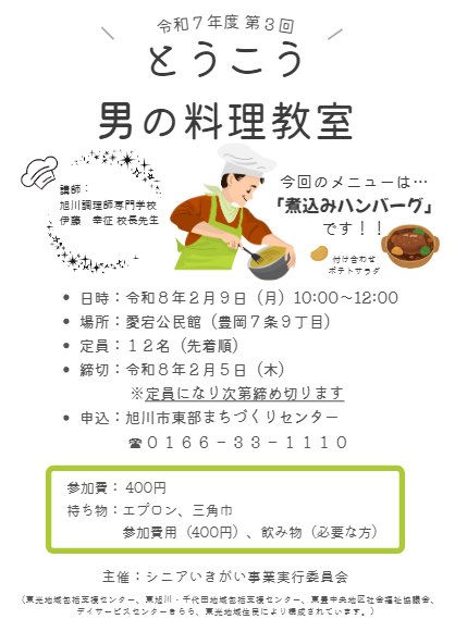 毎回人気のイベント「とうこう男の料理教室」の令和7年度最終回が開催されます。