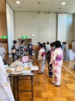 8月の夏祭り茶会では、浴衣を着て地域の皆さまに抹茶のおもてなし。
