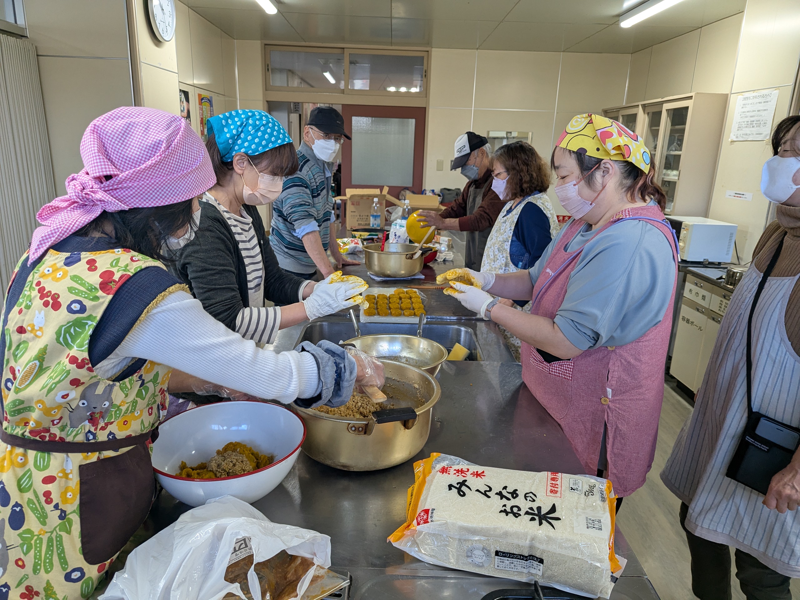 さつまいもご飯、豚汁、カボチャカレーコロッケなど、美味しい昼食をみんなでいただきました。