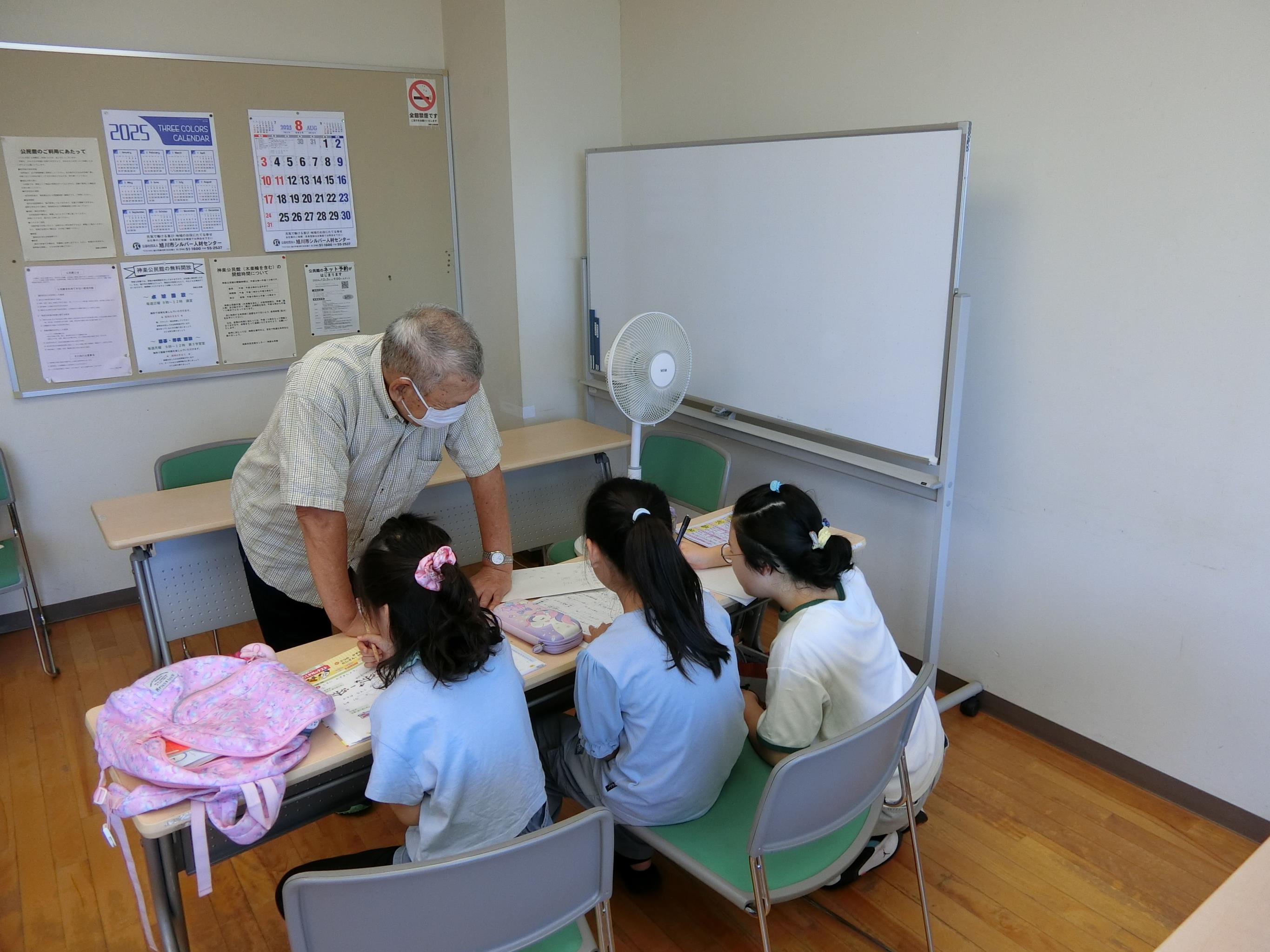 【内容】 小中学生が宿題やドリルなどの学習教材を持ち込んで勉強する「学習室」を開設しました。わからないところは旭川医大看護学科の大学生や元教師の地域住民に教えてもらい、地域の大人が見守る安心の環境で学習に取り組みました。