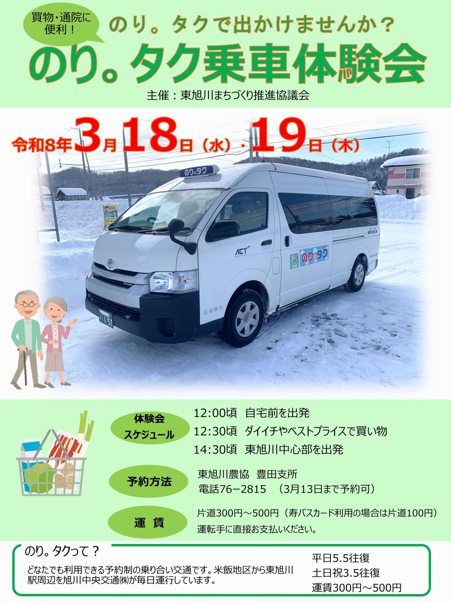 ・米飯地区での「のり。タク」サービスの利用促進のため、乗車体験会を実施しました。